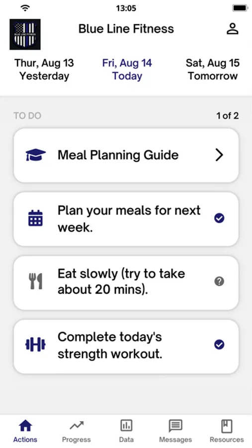 The Blue Line Fitness app is designed for clients of trainers who have enrolled in the Blue Line Fitness program. The app will send push notifications and prompt clients to answer yes/no question in regards to comply with healthy habits sent by your coach.