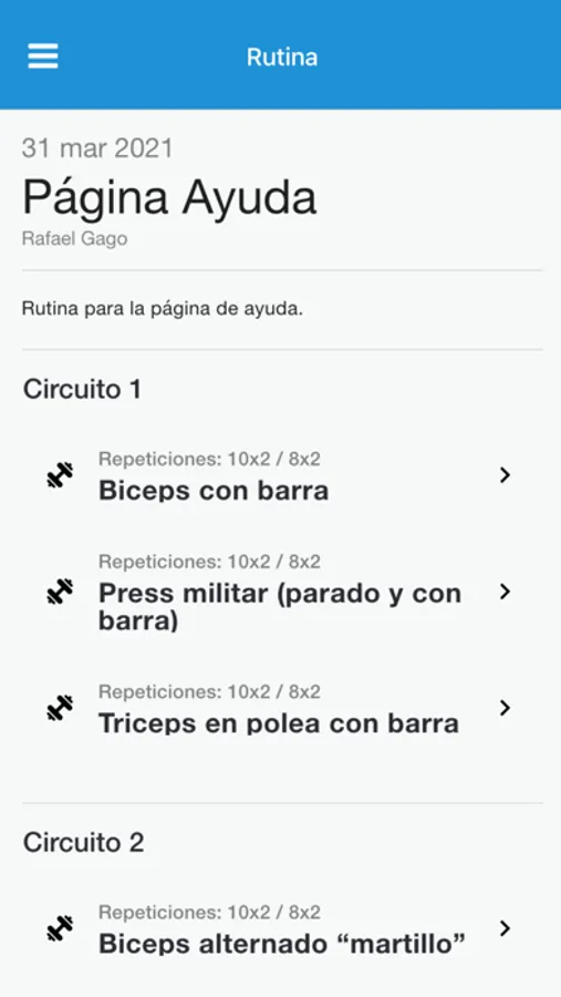 If you want to use the app as a client, you will be able to see the list of trainers you have along with the routines that they have created for you and within each routine you will not only be able to see the names of the exercises that make it up, but also a brief description and an explanatory YouTube video. In addition, in each routine you can add personal notes only visible to you. Ideal for recording weight, progress or any general comment.