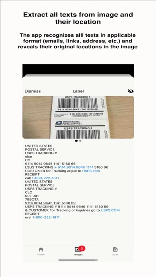 • Text Extraction: Extract all available texts in images (Even hidden/unnoticeable ones). All phone numbers, addresses, links etc. will be formatted if applicable as shortcuts (Open Map to search, open email composer etc.). It can recognize around 60 languages and also capable to tell you what possible languages are (with confidence ratios).