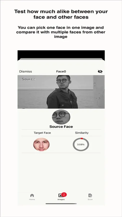 • Face Comparison: It provides face comparison recognition and gives similarity estimates. You can compare any faces. AI uses most visible face from source image and compare it with all faces appearing in target image.