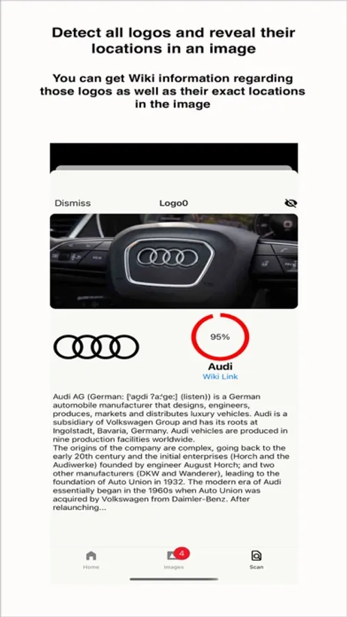 • Logo Detection: Instantly recognize all available logos appearing in the images and extract them along with their locations and descriptions,