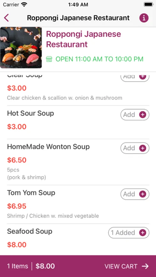 1. Get the Roppongi Japanese Restaurant’s Online Ordering app and conveniently order from anywhere on your iPhone.