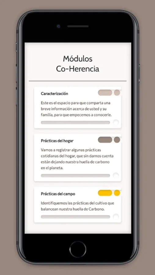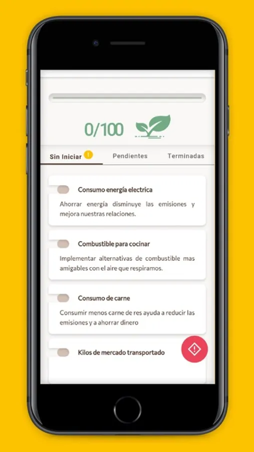 La aplicación funciona en tres partes principales. Primero, hay un cuestionario que recopila información sobre las prácticas en la casa y la granja. Luego, la aplicación calcula la huella de carbono y muestra el resultado con un desglose del origen del carbono. Por último, hay una sección con 10 prácticas que se pueden utilizar para reducir su huella de carbono junto con retos y un sistema de puntos.