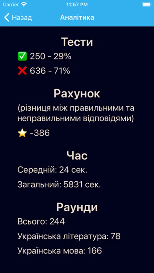 Максимально зручний інтерфейс для проходження тестів з предметів: українська мова, українська література, історія України, географія, біологія. Інші предмети буде додано поступово.