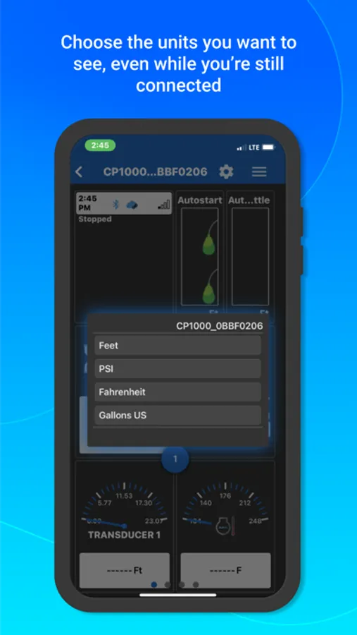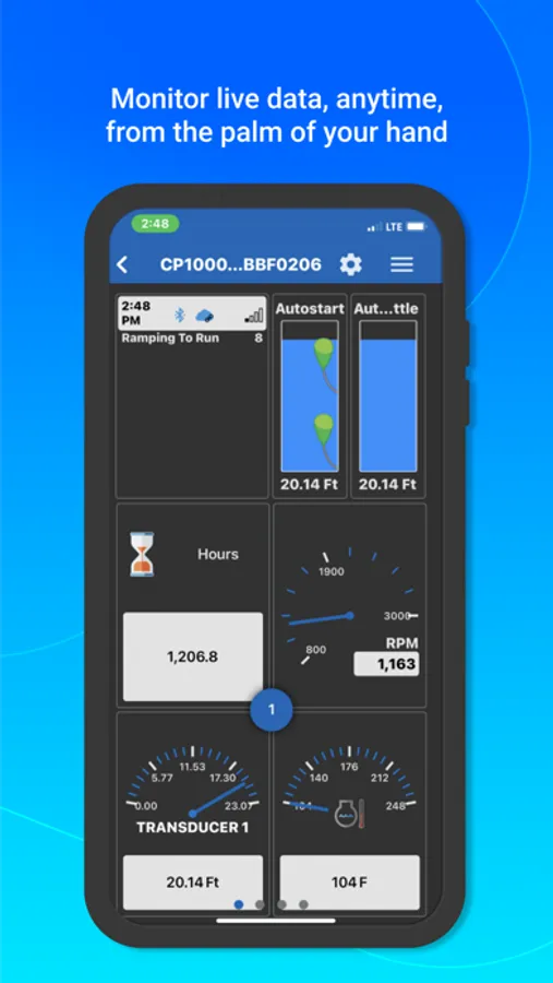 Remotely monitor and control your Bluetooth enabled CP1000 panel. Easily and securely find and connect to a specific panel. Customize your dashboard and gauges at anytime with real-time live updates