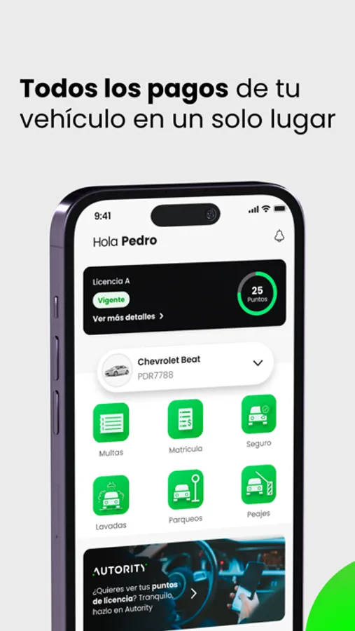 ¡Con Autority, olvídate de la confusión y la falta de tiempo en los pagos y servicios de tu vehículo! Multas, pagos de matrícula, vigencia de licencia, lavado de auto, parqueo sin efectivo, seguro, balances de tag y peajes... todo resuelto de manera sencilla y ágil en un solo lugar.