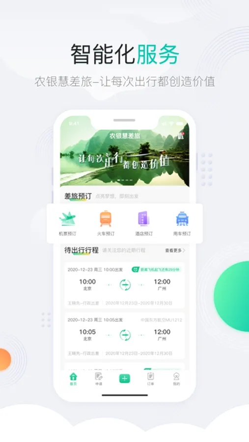 “订单管理”随时查看订单状态;“行程管理”自动管理差旅行程,及时提示出行,重要行程不耽误,商务出行更智能、省心、省事。