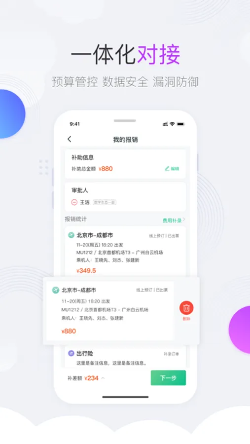 APP实时接受出差申请审批信息,及时完成审批操作,审批通过后自动预订,以超高效率执行公司差旅政策,实现差旅费节省。