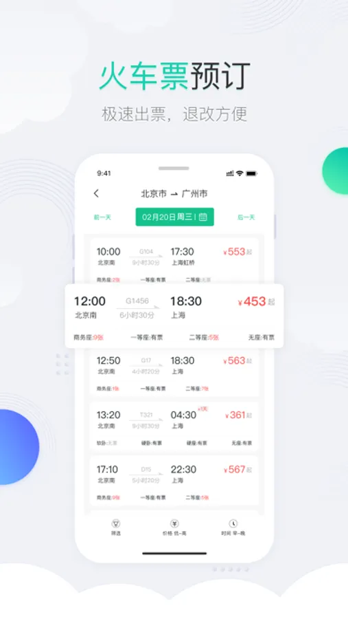 高铁动车、普通列表等火车票,国内火车票随心订,提供退改签,方便又快捷。