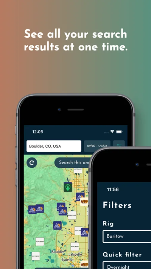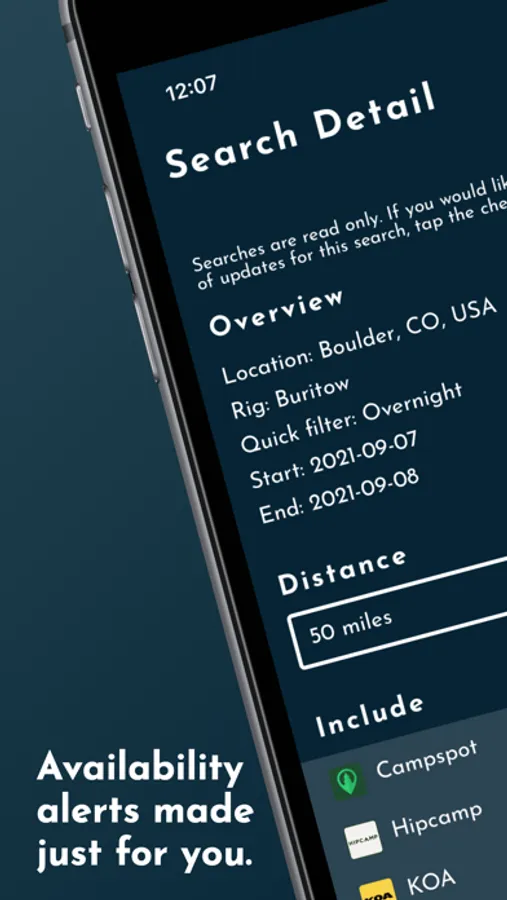 Never reenter your campground preferences again. Want a quick overnight stay? Need full hookups? Make quick filters for them! Have multiple rigs? Set them up to pair with quick filters to search for available campsites in two taps.