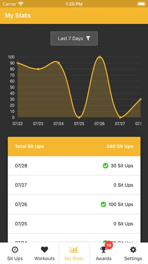 With Sit Ups Counter you can easily track you situps throughout the day. View statistics and important information about your situp tracking. Set daily Sit Up goals.