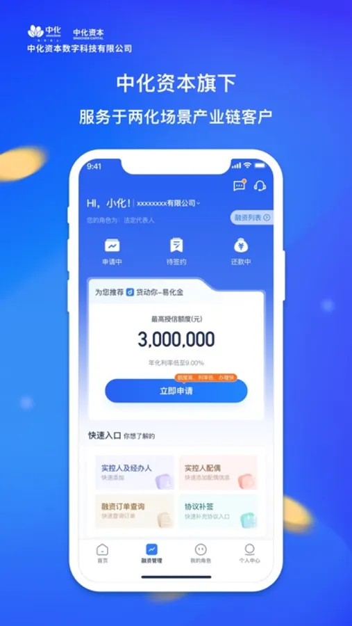 中化资本数字科技有限公司(以下简称“中化资本数科”)是中化资本全资子公司,前身是中化资本金融科技创新中心,致力于运用大数据、人工智能、区块链、物联网等先进技术,为产业客户提供基于产业数字化的金融创新服务方案。