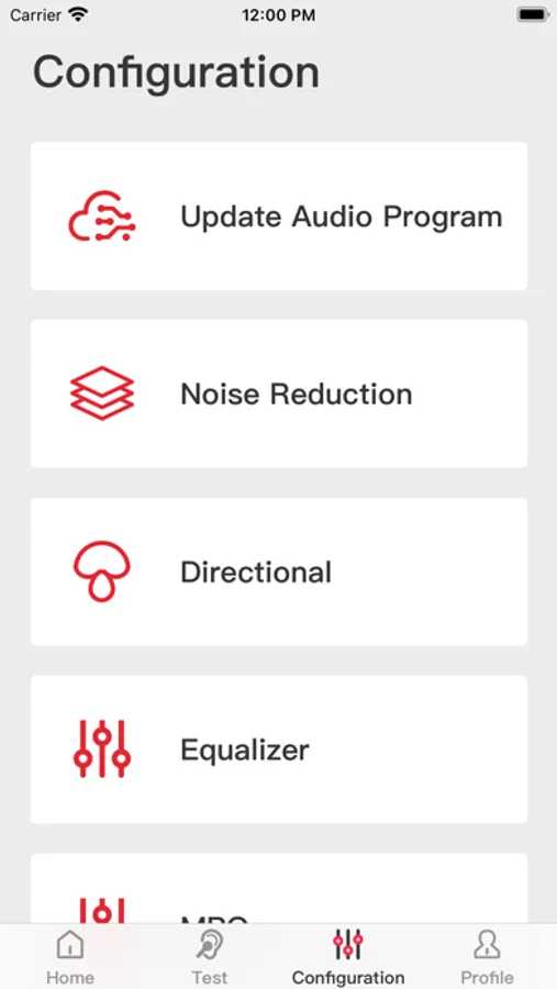 The APP controls the hearing aid's volume, switches modes, and tests your hearing.