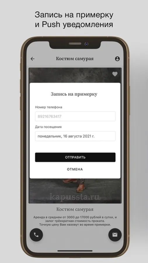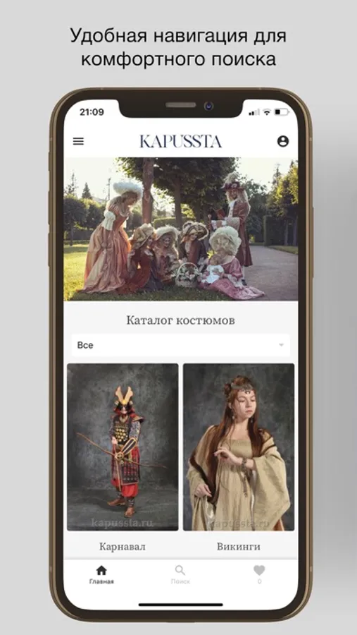 Приложение-каталог проката исторических костюмов от мастерской Kapussta. В коллекции более 20 000 костюмов. В приложении представлена вся коллекция, она удобно разложена по каталогам, есть поиск по базе и удобное бронирование даты примерки.