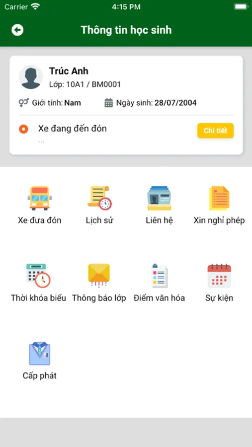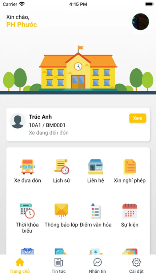 - Nhận thông báo và tra cứu hành trình đi học của con mỗi ngày