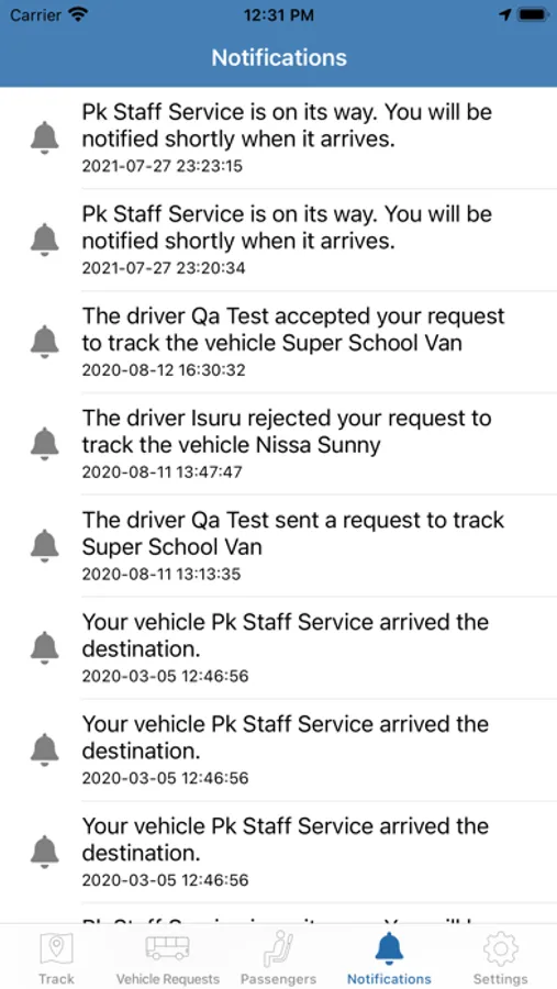 - push notification alerts of your driver’s activities.