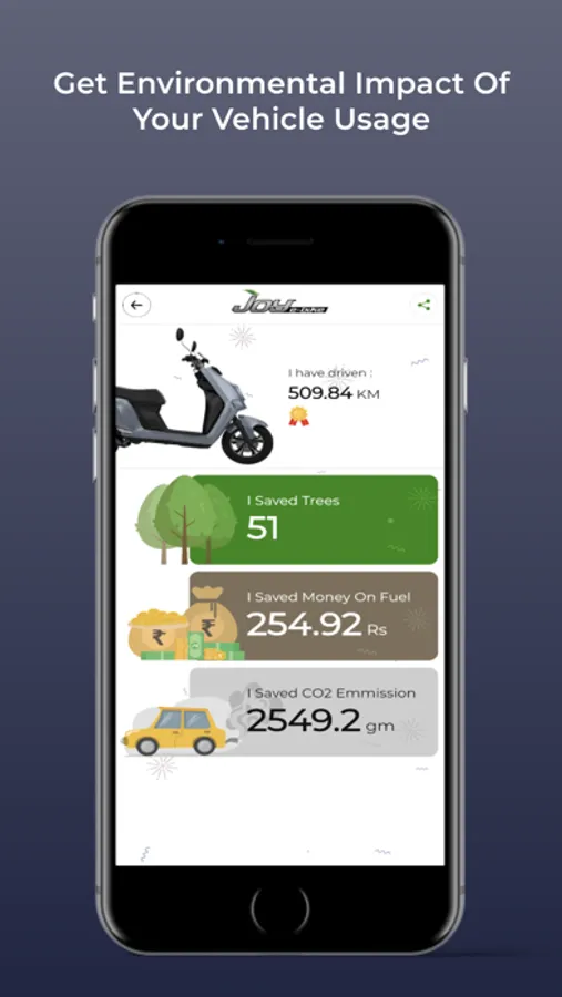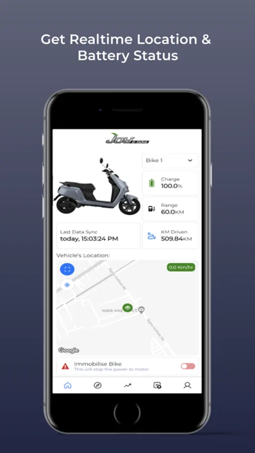 You can stay connected with your Joy E-Bike and manage it. Get realtime location and battery status. You can remotely track, lock/unlock your vehicle. Analyse ride history with statistics, plan your trips for charging requirements. Set customisable geofence and battery alerts to get notified instantly. Get information about positive environmental impact of your vehicle's usage and feel proud to share it within your social media channels.