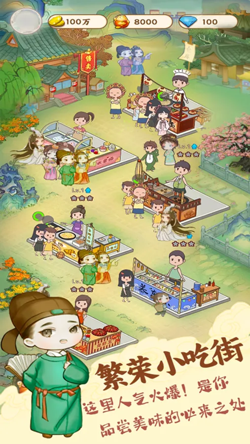 吃货的福利,为所有吃货打造的模拟经营游戏,轻松挂机,所有吃货心中梦想的小吃街,你只需要无限升级你的摊位,就能轻松掌控这个游戏。