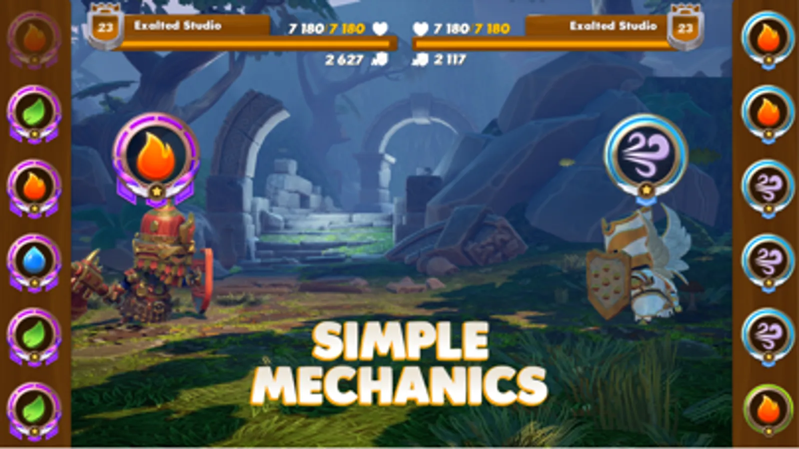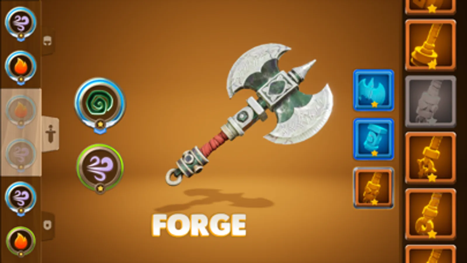 There’re five materials: Gold, Steel, Wood, Obsidian, and Pearl, plus a huge variety of items in 4 levels of rarity are waiting for being collected. Each item can hold a certain amount of material which enables the attack elements. Craft your gear and upgrade your hero’s abilities with attack elements and items of your choice! Choose the combination of attack elements that rivals your enemies. Be smart, there’s no best choice, be flexible and adjust in time.