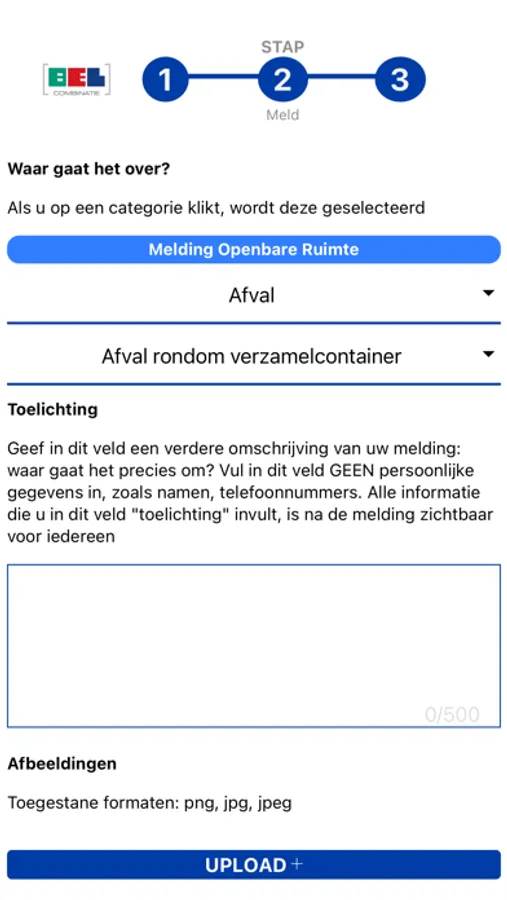 U kunt foto´s en een beschrijving toevoegen aan uw melding.