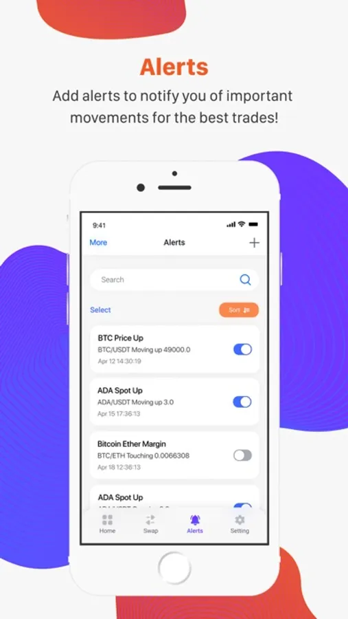 You can add alerts in Rodinia wallet to notify you of important movements of the market for the best trades!