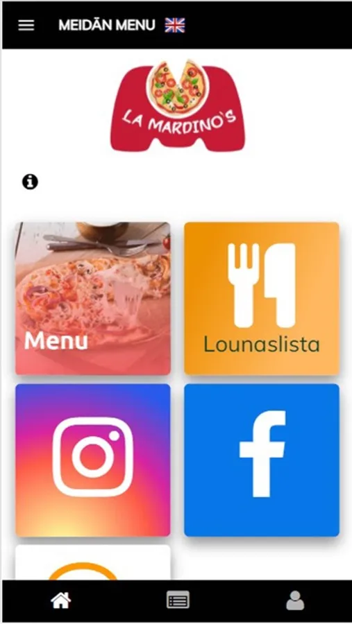 La Mardino's Pizzeria ravintola-applikaation käyttöliittymä on helppokäyttöinen ja sen valikko on selkeä sekä