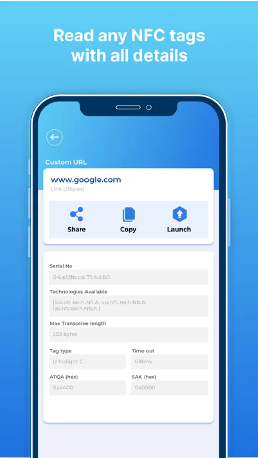 To use NFC Tag Reader, you have just to hold a tag or a card against the /front top of your device to read it. NFC Reader lets you copy the content of the tag.