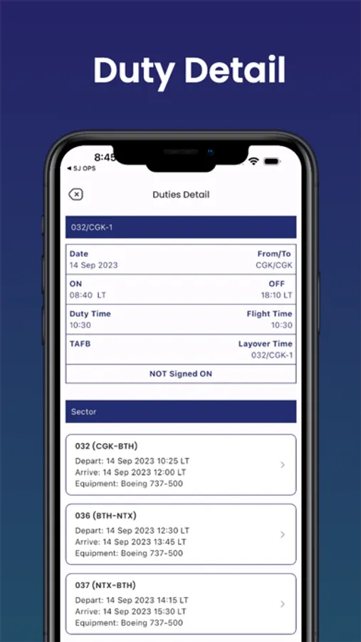 - receive notifications for duty changes and messages from airline