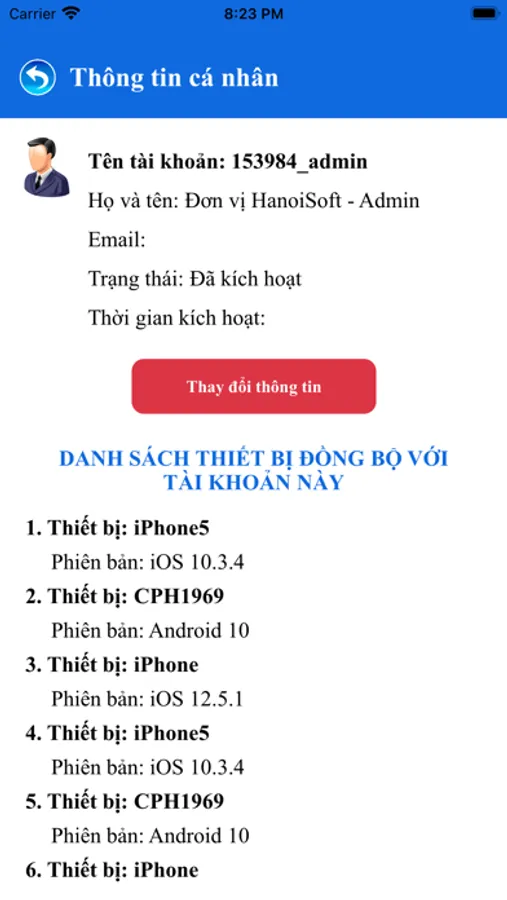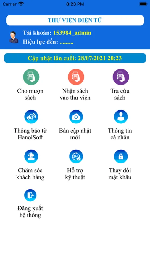 Tài khoản ứng dụng được liên kết với hệ thống phần mềm Thư viện điện tử của HanoiSoft.