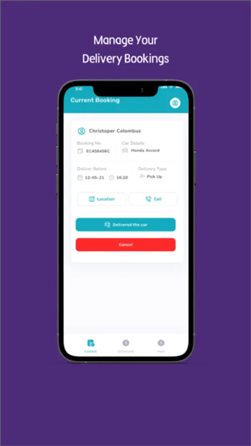 The application is designed to help our partners in managing and scheduling daily delivery bookings, in addition to tracking the driver’s movements and to be updated with the time delivering the car to the customer, as it reflects the quality of the driver’s performance by measuring the speed of delivery.