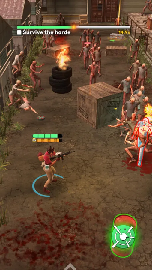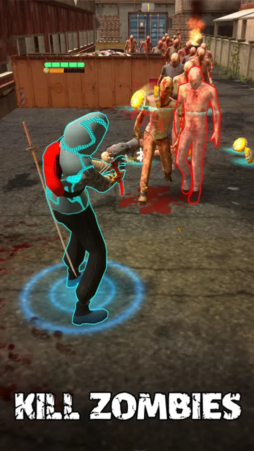 Slide your finger on the screen to move around. You fire automatically at zombies.