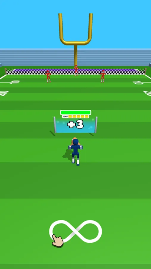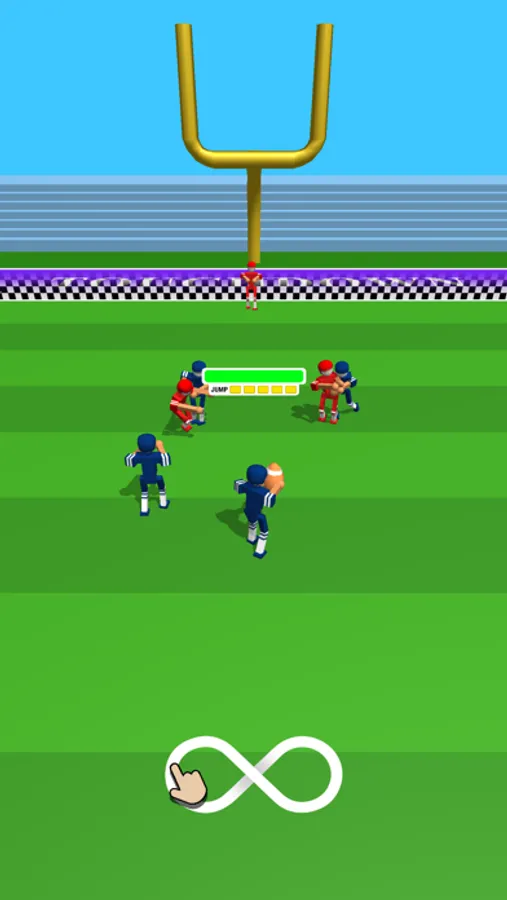 Block rivals with your teammates and run for touchdown. Jump away from your rivals and towards victory! You can gather more teammates or run solo! Show them who is the best QB in the stadium!