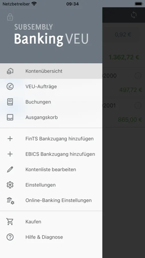 Nach dem ersten Download können Sie BankingVEU für 30 Tage ohne Einschränkungen kostenlos testen. Anschließend ist für die volle Funktionalität der Abschluss eines kostenpflichtigen Abonnements über den App Store erforderlich. Folgende Abonnements sind möglich: