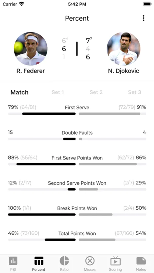 After a set is played, both players receive PSI Ratings. If the player’s final PSI Ratings are positive, it means they won more points than lost. If the player’s final PSI Ratings are negative, it means they lost more points than won.