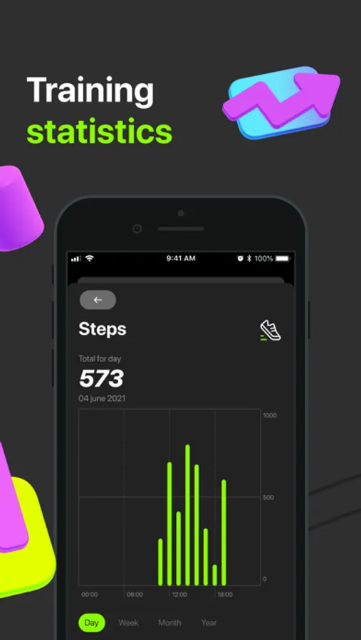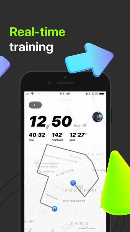 When starting the "Training" mode, data on the route, the pace of training, data on the target indicators of the distance traveled and heart rate are transmitted to the Application from a smartphone or bracelet.