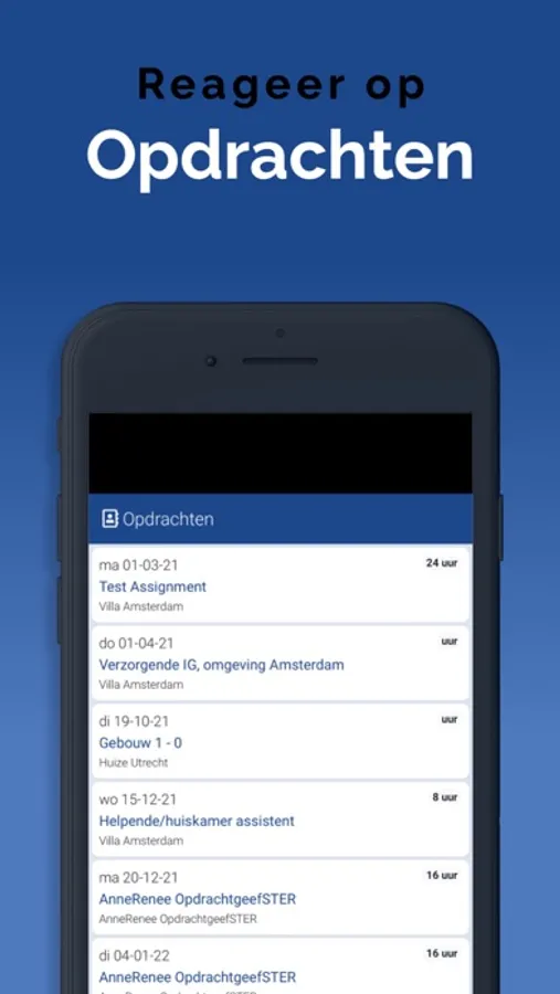 De App is gekoppeld aan het systeem waardoor informatie altijd up-to-date is, via een overzichtelijk dashboard. Bovendien komen belangrijke meldingen, als nieuw beschikbare opdrachten, via een push melding binnen op het apparaat. Zo zie je niets over het hoofd. Ook wijzigingen worden direct zichtbaar, ook in de agenda. Je bent dus altijd op de juiste plaats aanwezig.