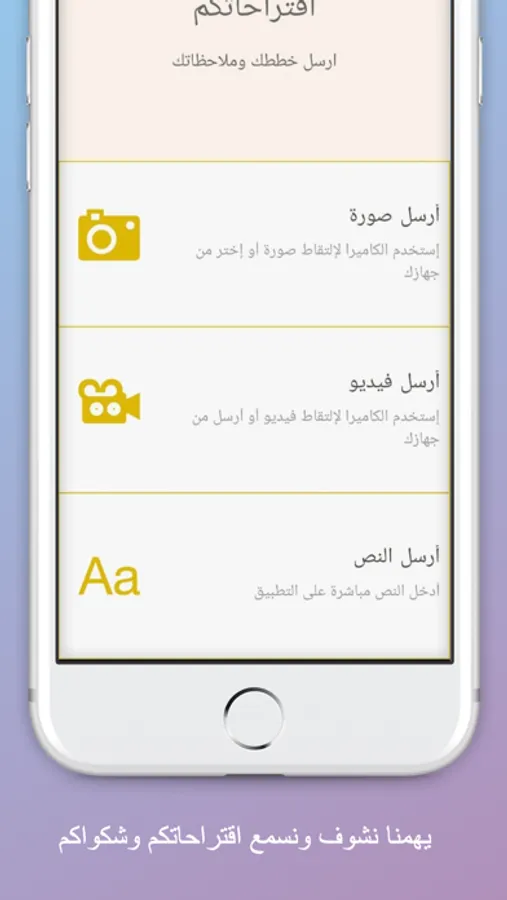 بإمكانك مشاركة رأيك او اقتراحاتك او حتى شكواك ونستطيع ان نتواصل معك لحل اي مشكلة بإذن الله