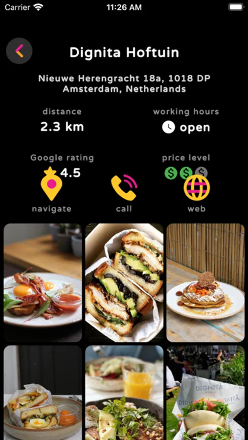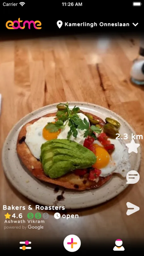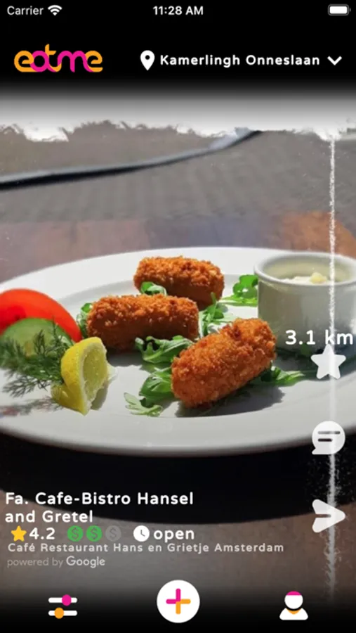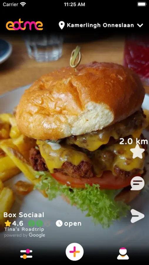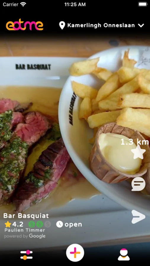 Eatme allows you to find cafes and restaurants near you. You can see pictures of the food and choose a café or restaurant that suits you. You can also specify a place on the map, for example, where you are going to go and find restaurants in that area.