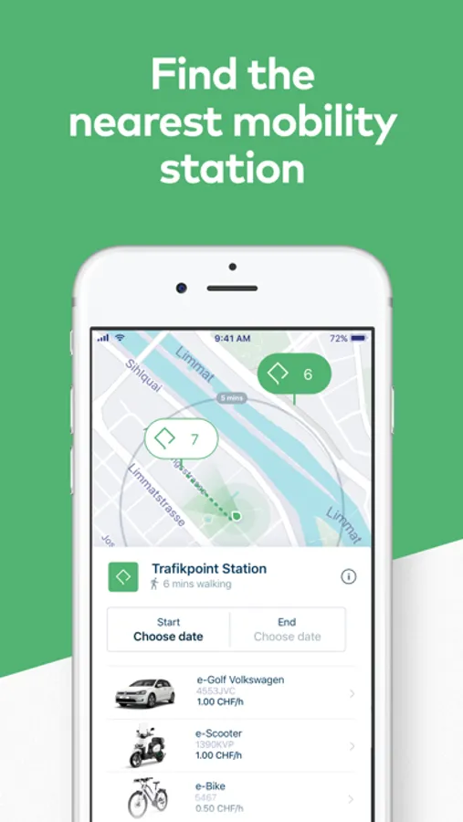 Trafikpoint is a mobility station with vehicle sharing (E-Car, E-Bike, E-Scooter, E-Cargo bike) for real estates and corporate mobility. Using the Trafikpoint app, users can digitally book, pay and unlock vehicles with one and the same app. In addition to the public transport, they take advantage from a multi-modal and flexible mobility offer just in front of their home or office. Trafikpoint is part of a state-of-the-art mobility concept focusing on saving resources, incentives, and climate friendly vehicles. With Trafikpoint, you are smart and mobile in your neighborhood.