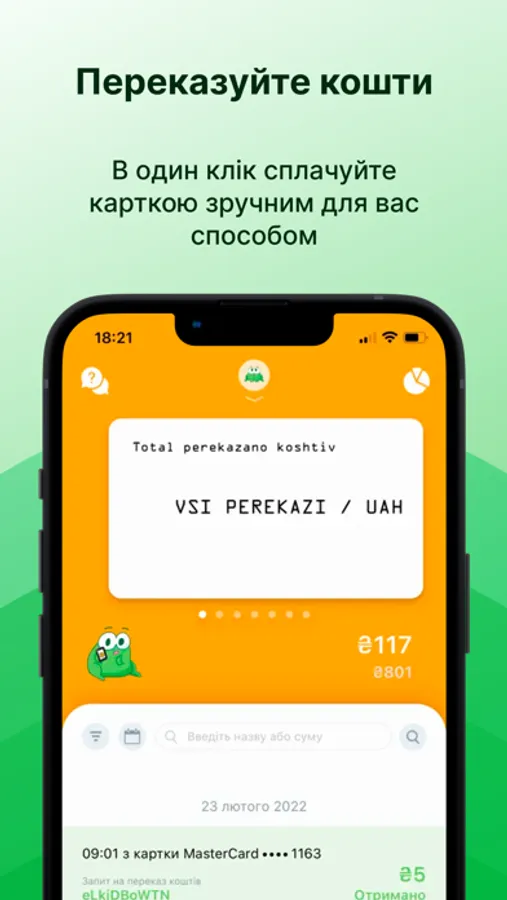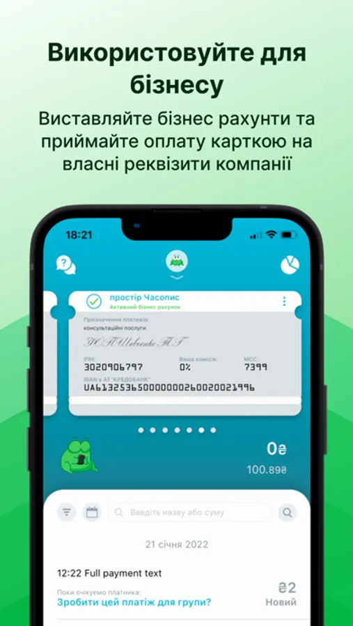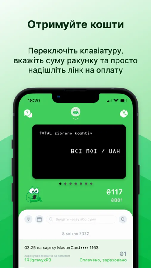- Створюй рахунки у застосунку або у будь-якому месенджері.