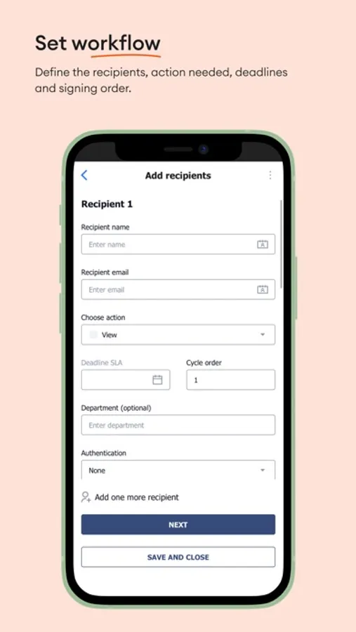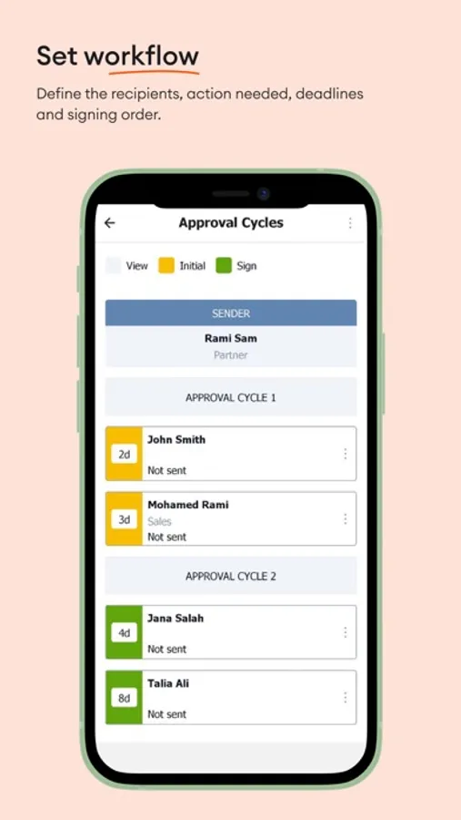 - Set the document flow order and assign deadlines to each user to approve or take specific actions on the contract.