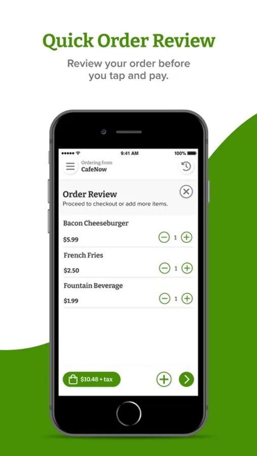 Breakfast, lunch, or anytime in between; CafeNow satisfies your cravings. Whether it is a coffee to start your morning, or a much needed break for lunch, CafeNow allows you to quickly and seamlessly see what delicious offerings are available today. Browse the daily specials or reorder your existing favorites - simple and easy. CafeNow allows you to order just the way you like it with customizable menus and chef recommendations. Have your items ready when you want it, where you need it, by simply selecting the time and location where you would like to pick up your food. Quickly tap and pay with flexible payment options and you are ready to take on your busy day.