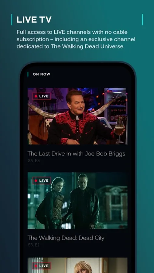 •Exclusive access to The Walking Dead Channel, a live streaming network fully dedicated to all seasons of The Walking Dead, Fear the Walking Dead, and The Walking Dead: World Beyond, plus a host of cast interviews, BTS moments and more.