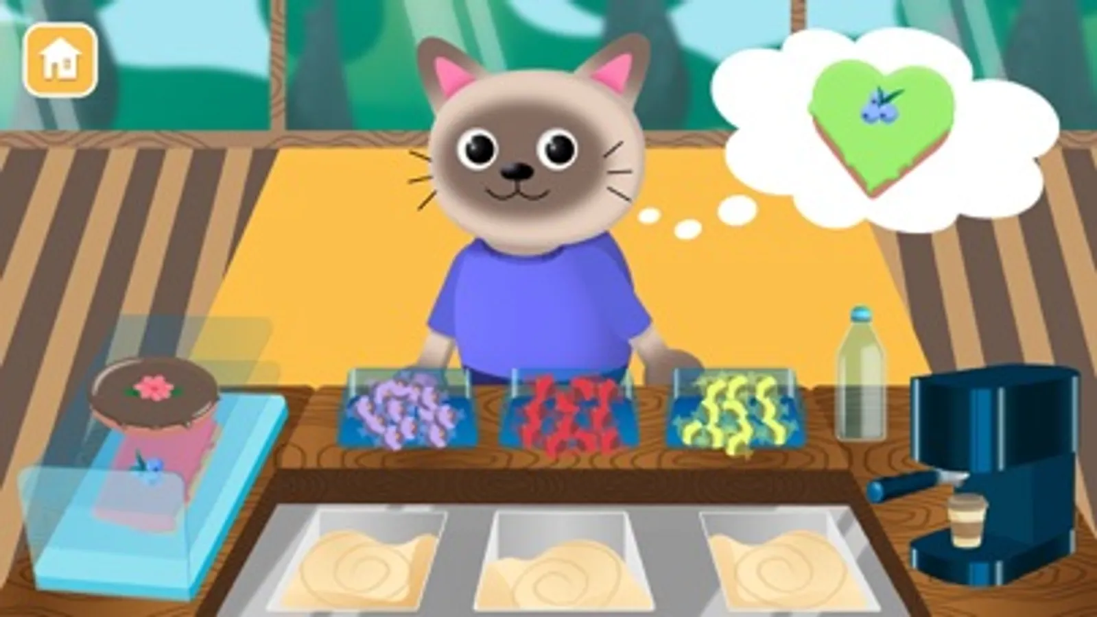 the game gives the child an understanding of how his favorite delicacies are prepared in a pastry shop with sweet pastries