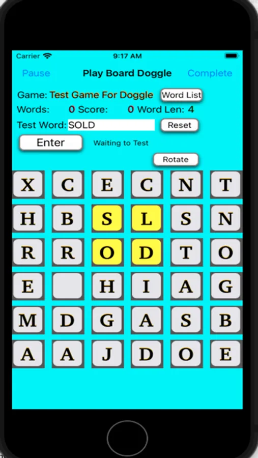 The app requires the initiating player “Game Owner” to choose the type of play timed or untimed, select the other players for the game “Players” and create the Doggle Board by one of two methods for distribution to the other players. The app verifies that the word’s letters are connected and that the word is in the dictionary and are the correct length for the game. When the players are finished they send their words to the “Owner” that initiated the game and then the “Owner” scores the game and sends back the results to each player.