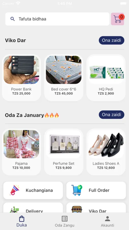 Through our application “CHAP CHAP”, we have several sections such as Kuchangiana “Consolidation”, Full Order, Delivery and Viko Dar “In Dar”. These sections serve in ordering goods according to customer’s (business personnel) purchasing power.