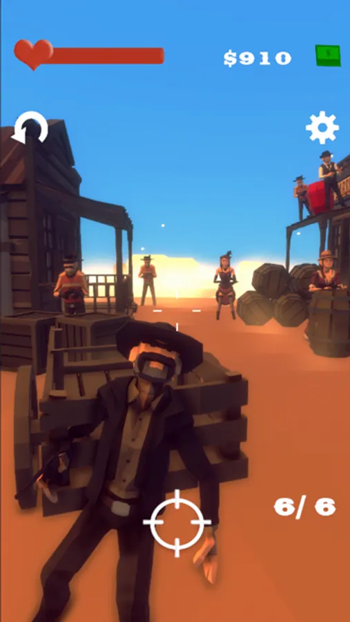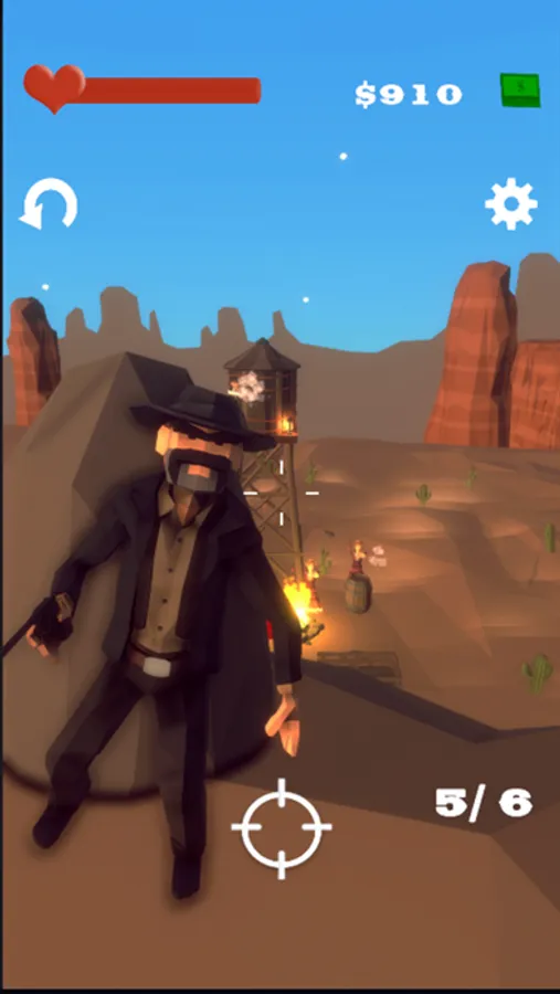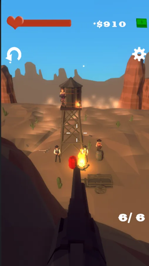 Gun Slinger 3D gameplay is easy to pick but hard to master. Shoot bandits and clear the camps to progress and unlock new levels. Encounter new enemy types like snipers. Think about every move you will make before engaging in Wild West war. Unlock new weapons to increase damage & shoot explosive barrels to take out multiple enemies.