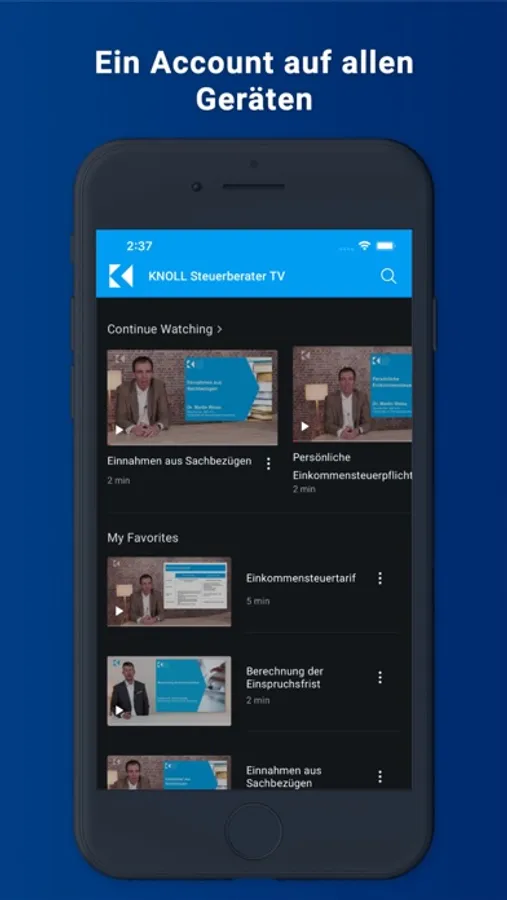 KNOLL Steuerberater TV offers a subscription service that you can subscribe to using your Apple ID. You can subscribe **plan lengths, weekly, monthly, yearly**. You'll be charged as a recurring transaction through your iTunes account starting at the end of your free trial (unless you cancel during the free trial). Payment automatically renews unless you cancel your account at least 24 hours before the end of the current subscription period. You can manage your subscription, cancel anytime, or turn off auto-renewal by accessing your iTunes account. Terms of Service: https://odeum.io/terms/subscriber-tos.html Privacy Policy: https://odeum.io/terms/privacy.html