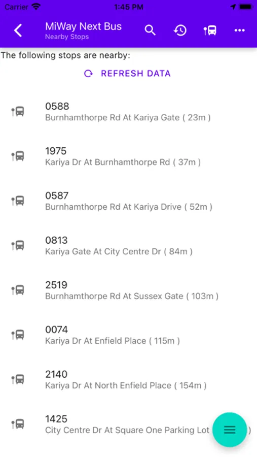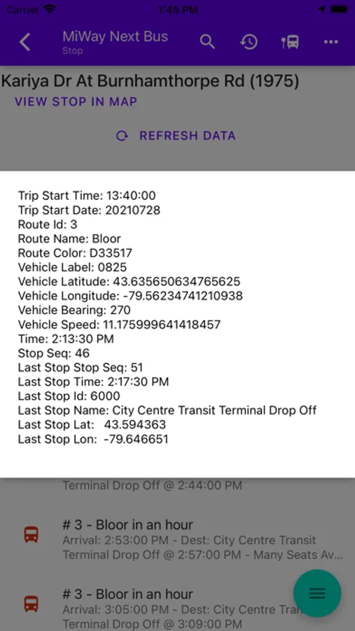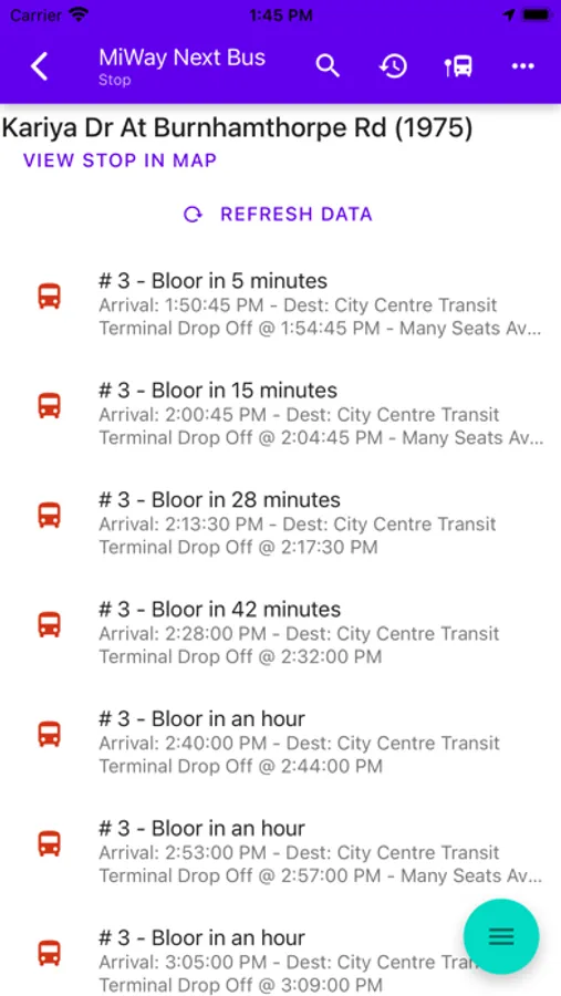 The Mississauga MiWay App will list all busses at a stop including when they are arriving and where they are going. Data is in real-time from Mississauga's Open Data GTFS (Transit Feed System).