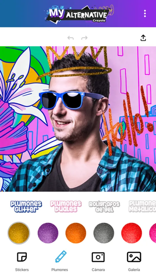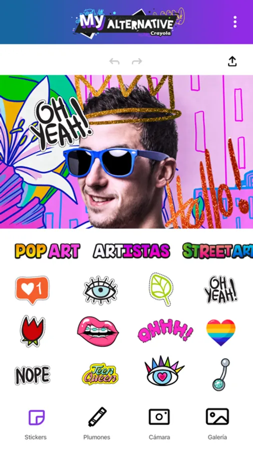 Tómate una foto, llénala de estilo con el editor de fotografías y retoca con los efectos padrísimos de los 6 productos de la línea Alternative de Crayola. Complementa tu creación con stickers y dale el toque único que estás buscando. ¿Ya está lista tu foto? ¡Compártela con el mundo y muéstrale en tus redes lo que piensas! Deja una huella valiosa en tu entorno y conviértete en un agente de cambio.
